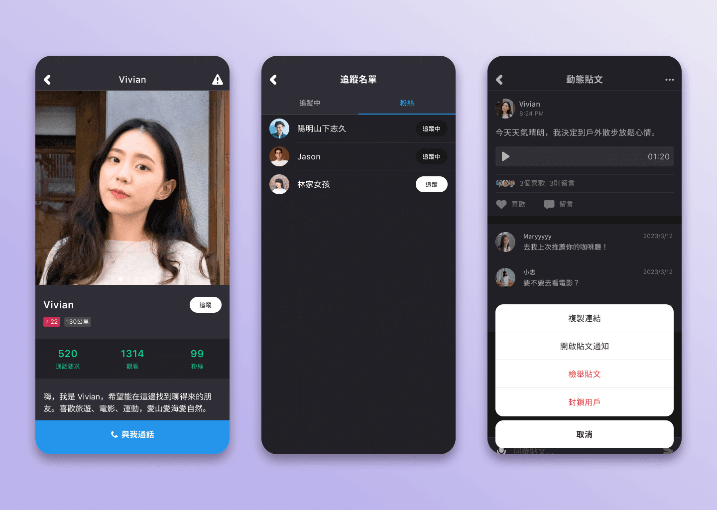 然而,隨著社群化的進程,難免會遇到一些負面或情緒性的內容。為了保護用戶免受騷擾或攻擊,我們陸續開發了檢舉和封鎖功能。這些功能允許用戶主動回報不當行為,使我們能夠及時處理並維護社群的健康發展。我們的目標是建立一個友善且安全的社群環境,讓每位用戶都能自在地參與互動而不受到威脅。透過這些功能的加入,我們希望提高用戶的參與感,並確保社群充滿正能量的內容。